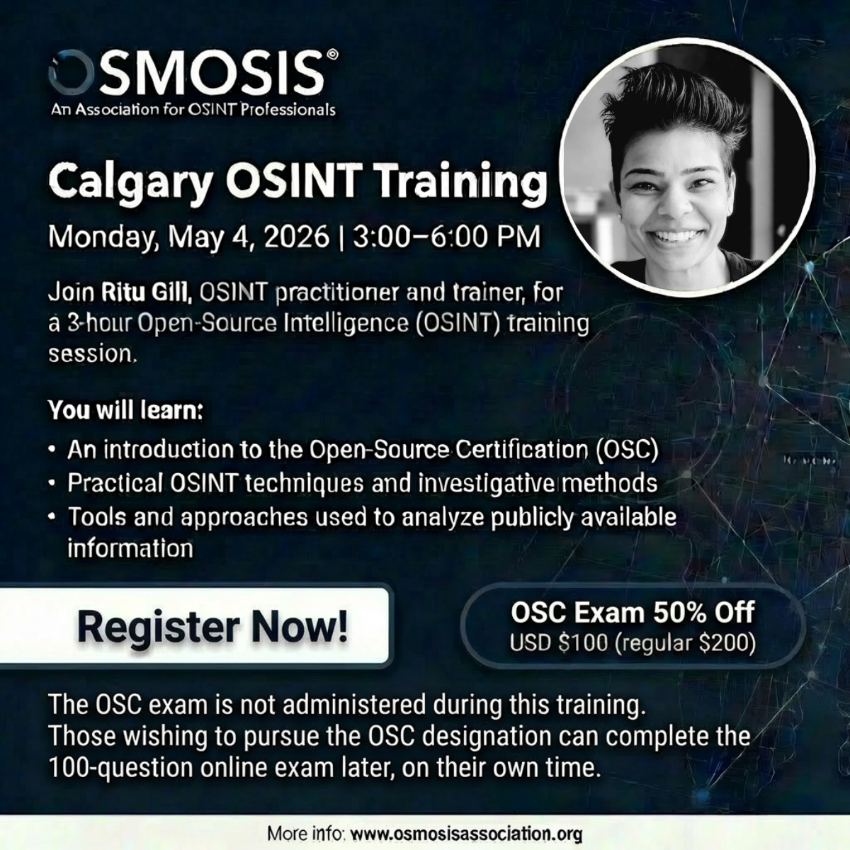 Open Source Certification (OSC) will also be available by OSMOSIS – an Association for Open-Source Intelligence Professionals.